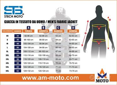 TAGLIE DISPONIBILI : DALLA S ALLA 5XL Giacca in tessuto Stechmoto ST 815 Venom-X2 H2Out 4 Stagioni con Sistema Triplo Strato ✅ Adatta per Tutte le Stagioni Invernale: utilizza contemporaneamente la fodera termica isolante e la membrana impermeabile antivento RAMSEY VENTED 2.0, per affrontare le basse temperature e le intemperie con il massimo isolamento. Estiva: rimuovi entrambi gli strati interni e apri le ampie prese d’aria anteriori e posteriori, ottenendo così una ventilazione ottimale durante i mesi più caldi. Mezza stagione: scegli uno dei due layer interni (termico o impermeabile) in base alle condizioni atmosferiche del momento. Caratteristiche Tecniche Principali 🧵 Materiali di Alta Qualità Tessuto-Tex esterno: Poliestere ad alta resistenza, con trattamento idrorepellente per una protezione superiore. Struttura robusta ma flessibile, ideale per il turismo e l’uso quotidiano. 🛡️ Protezione Omologata Protezioni CE Betac livello 1 su spalle e gomiti (rimovibili), secondo normativa EN 1621-1:2012. Predisposizione per paraschiena certificato CE (acquistabile separatamente) Betac livello-1 o livello-2. Inserti riflettenti REFLEX anteriori e posteriori + dettagli catarifrangenti su braccia e polsi: massima visibilità notturna. 🎒 Funzionalità e Comfort Tasche multiple impermeabili per oggetti personali, con due tasche scaldamani e scomparti interni per documenti o portafogli. Sistema di ventilazione avanzato: zip di aerazione su torace e schiena per una regolazione del flusso d’aria personalizzata. Ampie regolazioni su braccia, avambracci, vita, polsi e collo per una vestibilità ergonomica e su misura. Zone elasticizzate