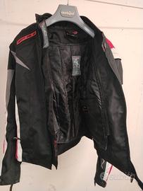Giacca moto usata solo per le guide della patente, ottime condizioni, con leggera imbottitura, protezioni schiena gomiti e spalle tutto removibile, taglia L