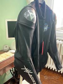 Giacca in pelle con lavorazione a maglia originale MV AGUSTA, progettata con una vestibilità da gara mappata sul corpo Fodera interna in mesh totalmente ventilata Prese d’aria laterali Aperture di ventilazione Paracolpi torace e tasca per paraschiena opzionale Comfort elevato, grazie agli inserti elastici Cintura in vita regolabile Fodera interna in mesh Numerose tasche esterne e interne 100 % pelle, taglia 52.