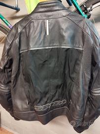 giacca taglia 54 pantaloni taglia 52 moto unibili tramite cerniera in pelle e cordura usati poco .