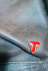Giacca da moto originale Triumph modello Trailmaster in pelle di capra con protezioni flessibili su spalle e gomiti e predisposizione para schiena. 4 tasche frontali e tasca interna, cinture e cerniere di regolazione laterale oltre a cerniere di ventilazione frontale e schiena. Completa di gilet trapuntanti interno rimovibile e predisposizione aggancio pantaloni. Ottime condizioni. Taglia S