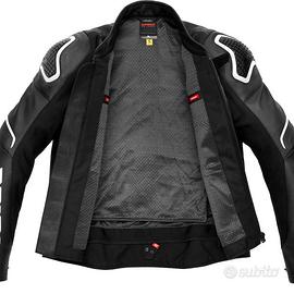 Il telaio principale della giacca è realizzato in pelle resistente all'abrasione (da 1,1 mm a 1,3 mm) con inserti Flex Tenax nelle braccia.