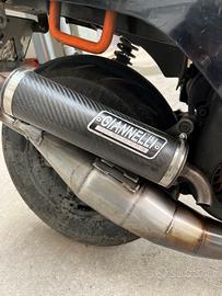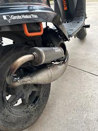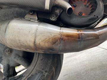 marmitta per minarelli verticale in condizioni ottime. Lana cambiata da poco. Due bozzette sotto alla pancia che a occhio non si vedono e non vanno a diminuire le prestazioni perché molto lievi. Fascette originali cambiate con delle fascette regolabili metalliche molto migliori da montare e smontare insieme nel prezzo cinghia yamaha