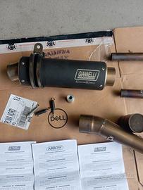 scarico completo Giannelli xpro per Tmax dal 2017 in poi monta anche su 560 ora è montato su 530sx 2019 completo di collettori catalizzatore e 3 fogli omologazione perfetto in tutto senza crepe lesioni rotture o graffi profondi.
