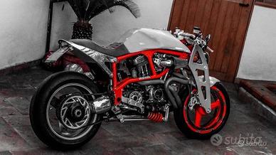 Vendesi progetto oppure in kit di montaggio forcella custom tipo girder con mono ammortizzatore centrale e cruscotto incassato in riser manubrio per realizzare moto custom uniche.