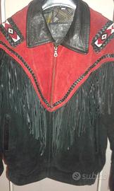 GIUBBOTTO IN PELLE “ LEDER WERNER” CON FRANGE E RICAMI PERLATI INDIAN STYLE FATTI A MANO PER MOTO CUSTOM. PEZZO RARO, VINTAGE, BUONE CONDIZIONI