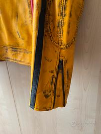 Giubbotto Biker Pelle Giallo Vintage, con inserimento protezioni moto.