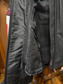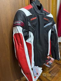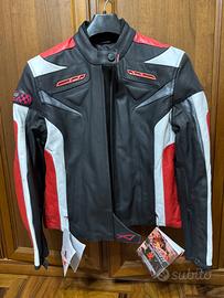 Giubbotto moto da donna , in pelle , nuovo ( con cartellini) sfoderabile, marca X Pro , colore nero, rosso e bianco. Taglia XL ma veste poco va bene per una donna che porta una giacca taglia 44.