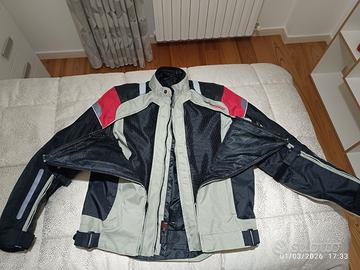 tuta moto uomo APro (giacca + pantalone con bretelle). Usata una sola volta, senza alcun danno si vende per taglia errata. Il pantalone è un 38 corrispondente ad una tg 52. Il giubbotto è tg L. Entrambi hanno triplo strato e sono sfoderabili ed il giubbotto può essere reso estivo rimuovendo le protezioni. La condizione è pari al nuovo. Il prezzo è da intendersi spese di spedizione comprese o se ritirato in loco da scalare le spese di spedizione (20€). Prezzo non trattabile e solo realmente interessati.