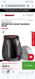 Zaino multifunzione Motocard con rivestimento rigido effetto carbonio e resistente all'acqua, capienza 25 litri, quindi ospita tranquillamente un casco integrale, dotato di varie cerniere per espansione e cinghie petto e vita,usato si e no una decina di volte e pagato € 50,00 più spedizione