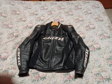 Giubbotto in pelle Dainese G. Racing D1 P. TG. 52 protezioni su braccia e spalle rinforzo esterno alluminio su spalle tasca per protezione schiena