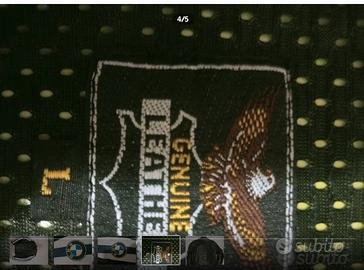 Come da foto giubbotto in pelle taglia L con loghi BMW laterali applicati da me sul giubbotto. protezioni presenti su spalle e gomiti, e predispozizione per paraschiena interno. internamente foderato con trapunta e tasca interna. cosegna a mano se proprio devo spedire euro 15 a vostro carico.