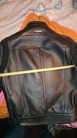 giubbotto marca M TECH con protezioni spalle gomiti in pelle taglia 48. praticamente nuovo perché un po' grande per me. veste leggermente più grande rispetto alla taglia 48 di Dainese. indicativamente considerate che essendo io 170cm x 70kg mi veste leggermente abbondante.