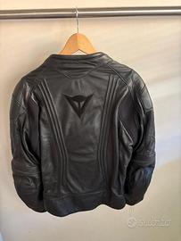Giubotto in pelle dainese nero taglia 54. Mai usato. Completo d protezioni sui gomiti, avambracci e spalle. Attacco per pantalone intergrato al giubotto