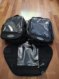 Borsa morbida espandibile universale da serbatoio con base magnetica. Struttura in cordura a 3 moduli: ogni borsa è sganciabile, con tracolla per il trasporto e con map-holder. Copertura antipioggia in regalo.