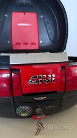 Vendo topcase Givi Maxia E52N Monokey da 52 litri in buono stato, con tris di chiavi, fornito di led ed impianto elettrico homemade. La valigia è accessoriata di schienale imbottito (E95S GIVI SCHIENALINO) e portapacchi in metallo (PORTAPACCHINO GIVI E96B). Sono state sostituite anche le cinghie interne (Z285 RICAMBIO CINGHIA INTERNA), il vetrino per piastrina portanome (Z286 VETRINO PER PIASTRINA PORTANOME MAXIA). Al baule però manca il fregio grigio MAXIA E52 acquistabile al prezzo di 3,21 euro su altre piattaforme. Il baule viene venduto pulito e privo di odore, imbustato e perfettamente inscatolato. Si preferisce ritiro a mano, sono in Campania ma spedisco in tutta Italia con un prezzo aggiuntivo di spedizione (circa 10 euro). Per la vendita o una richiesta di informazioni preferisco una comunicazione via WhatsApp al 393.0774878 ma posso ricevere telefonate ogni giorno dalle 14.00 fino a sera.