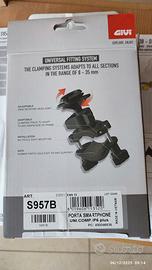 vendo porta cellulare/smartphone da manubrio (moto e bici) da 8 a 35 mm, GIVI Mod. S957B, nuovo mai utilizzato, dimensioni interne 161 x 83 mm, come da foto.