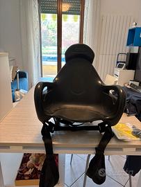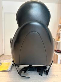 Seggiolino per scooter con poggiapiedi. Soluzione indispensabile fino a quando il bambino non appoggia i piedi sulle pedaline dello scooter. Robusto e stabile . Nessuna difficolta’ a montarlo sul mio 125 ( honda) . Preso su amazon dovr potete rendervi conto con le recensioni.