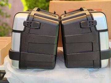 Vendo per cambio programma Coppia di valigia GIVI Trekker trk46. Le valigie sono nuove, ancora nella confezione originale, le ho provate una sola volta sulla moto che adesso sto per cambiare. Le borse Agganciano nei telaietti Givi o kappa Monokey. Hanno la doppia apertura con un piccolo sportellino per poter prendere oggetti all'interno senza dover aprire la valigia.