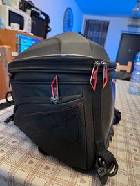 Vendo per passaggio a bauletto borsa da sella estensibile termoformata, adatta a moto sportive, capacità 22 litri, estensibile fino a 26 litri. PARI AL NUOVO! Materiali (realizzati secondo la normativa REACH): • Poliestere 1200D/PVC ad alta tenacità • Inserti in PU • EVA termoformato rivestito con PU antigraffio • ZIP di apertura marchio SBS* • Materiali esterni ad alta resistenza ai raggi UV, testato 1000 ore (ref. ISO 4892 – 2) Dotazioni: • Sacca in tessuto per conservare la borsa • Stampe e inserto perimetrale riflettenti per una maggior visibilità • Copertina antipioggia water resistant estraibile dalla tasca posteriore • Tiretti compatibili con l’aggancio di un lucchetto di sicurezza (non incluso) • Tasche laterali e tasca in rete interna al coperchio • Maniglia ergonomica con inserti in gomma • Spallaccio imbottito per trasporto a tracolla • Fissaggio universale con 4 cinghie (incluse)