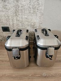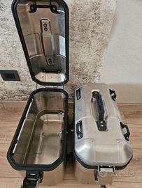 Vendo coppia valigie Givi Trekker Dolomiti da 36 lt in ottime condizioni, usate poco,solo in occasione di viaggi medio/lunghi (5/6 volte) 330€. Dotate di kit attacco su telaietti monokey, serratura cilindretti unificati che aprono con choave unica. Set di 4 chiavi (uguali). Tutti i Meccanismi perfettamente funzionanti. Disponibile anche bauletto centrale da 46lt buone condizioni, completo di poggiaschiena, rete interna e portapacchino superiore (eccessori originali pagati 130€) prezzo 230€. Se acquistati assieme, kit completo a 500€