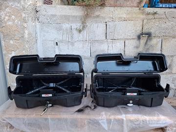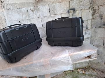 Givi trekker due trk33 e due trk46. Le borse Agganciano nei telaietti Givi o kappa Monokey. Può essere usata come bauletto o top case. È possibile fare diverse combinazione, una 33 e una 46 o due da 33 o due da 46. Hanno un piccolo sportellino per poter prendere oggetti all'interno senza dover aprire la valigia. Vendibili anche singolarmente. IL PREZZO È RIFERITO A UNA SOLA COPPIA DI VALIGIE.