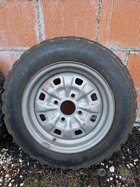 N 4 GOMME CHIODATE MONTATE SU CERCHIO FIAT R 13 ANNI 80, LE GOMME SONO VECCHIE MA IL CERCHIO È PERFETTO E ADATTO A PANDA 4X4 PRIMA SERIE O AUTO FIAT SIMILI ANNI 80/90