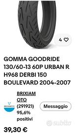 Treno di gomme Goodride h968 nella misura 130/60/13-140/60/13 dot 49/25 ancora imballate,per modifica cerchi da 13 su Vespa gts 250/300/310 super/ Supersport/supertech/hpe/6giorni- Malaguti Phantom F12-F12r 50cc/100cc/ Yamaha Aerox/Beta Eikon 50/125/150/Peugeot jet force./Aggiungo 4 litri di Motul 5100 per tagliando vespa e 1 litro di Olio cambio Motul 80/90 per rapporti primari e secondari da cambiare su tabella tagliandi Piaggio ogni 15 mila km. È gradito il ritiro a mano ma si può anche spedire se volete guardate le altre mie inserzioni possibile pagamento PayPal grazie.