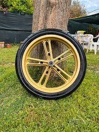 Gomme mitas montate a ottobre 2025 (usate fino a gennaio 2026) e cerchioni color oro del 2010 un po danneggiati e con ancora delle tracce di sporco che si possono togliere Tutto precedentemente montato su una Yamaha YZF-R125 del 2010 Prezzo trattabile