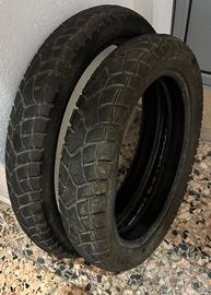 gomme mitas semi-tassellate per cerchi 21-18 , le gomme sono state montate a giugno e smontate ad agosto 2025.Mescola M+S, misure ant 90/90 21 e post 120/80 18. Gomme in ottimo stato, più del 70%.