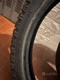 Vendo gomme semi tassellate 90/90/21 e 140/80/18 Sono semi nuove, usate pochissimo e poi smontate.