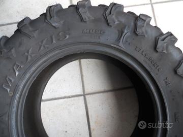 vendo per inutilizzo gomme tassellate da 27’’ per quad e ATV marca Maxxis Coronado NUOVE mai usate vedi foto. Misure gomme anteriori 27-9 R14 posteriori 27-11 R14. Montano su tutti i side by side ideale per Polaris RZR e Ranger 800 e 900 e per quad utility Polaris Sportsman, Scrambler, Can am Renegade Outlander 500 570 800 1000 con cerchio da 14 pollici. Prezzo euro 450 non trattabile. Volendo posso spedire con spese a carico dell’acquirente, tel 3409195866