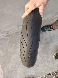 Gomma posteriore 180/55 ZR 17 M/C (73W) e gomma anteriore 120/70 ZR 17 M/C (58W). Gomme usate in ottime condizioni e ben conservate in luogo apposito, coperte.