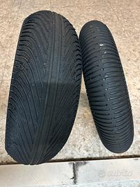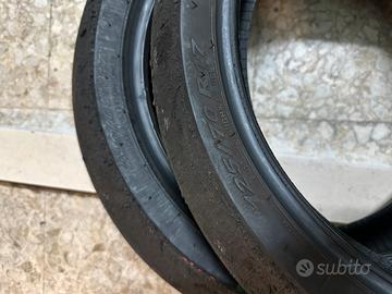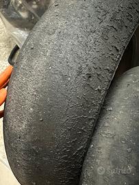 Vendo due treni di gomme uno Pirelli Superbike 125/70 200/65 ed un preno di rain Dunlop 125/80 190/55 . Le Slick sono state usate per due giornate a Cremona. La Rain sono usate e tenute di scorta.