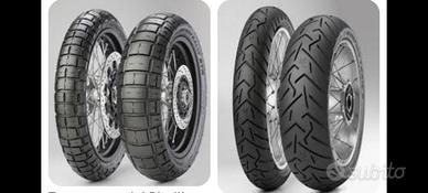Pirelli Scorpion Trail ll . Usura minima 500 km. praticamente nuove. Smontate subito per passaggio ad altro modello. Nessuna crepa, nessuna ovalizzazione. Misura 120/70 ZR 19 M/C 60W TL anteriore e 17060ZR17 M/C 72W TL. Occasione vera. Consegna a mano . Euro 200. Prezzo NON trattabile. Disponibili anche gomme tassellato originale Pirelli Scorpion Rally STR usato . Ottime per chi vuole provare l'off Road senza investire sul nuovo. Usura al 50%. Euro 120. No perditempo . Zona Verona