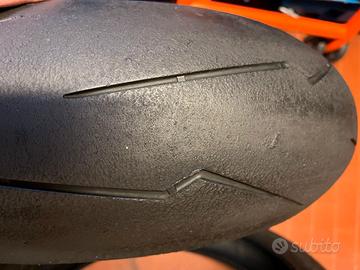 Vendo gomme usate Pirelli Supercorsa Sp usate due giornate a castelletto come da foto ancora ottime per l'uso stradale. Misura 190 55 17 dot 5022 120 70 zr17 dot1023 Solo ritiro non spedisco