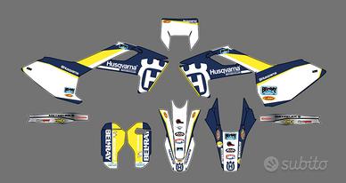 Vendiamo kit grafiche personalizzate stampate su materiale crystal spessore 500 micron. Per qualsiasi modello e anno di Husquarna wr cr te tc enduro cross e motard , loghi sostituibili con qualsiasi sponsor: finitura opaca , lucida , metallizzata , fluo . Coprisella personalizzato 60 euro. A richiesta forniamo anche kit plastiche completo. Scrivetemi per il link al catalogo completo. (tanti disegni grafici disponibili anche in stile Redbull Rockstar Monster) Spedizione in tutta Italia!!! Per info e ordini 3475612538 anche sms/whatsapp
