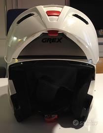 E' L'apribile di GREX costruito sulla solida base del modello nolan N90, del quale conferma le già apprezzate caratteristiche tecniche. Mentoniera, prese aria superiori e spoiler posteriore. Doppia omologazione P/J, schermo parasole VPS (Vision pre System) con protezione UV 400, esclusivo sistema di apertura della mentoniera con meccanismo a doppia azione (Double action), efficace sistema di ventilazione, sistema di ritenzione microlock con regolazione micrometrica, buon comfort generale. Consegna in zona Treviso di persona possibile prova.