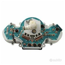 (R.12752) Vendo gruppo strumentazione cruscotto nuovo per Peugeot Elyseo 125 e 150 cc con codice 738236 composto da contakilometri , contagiri , orologio digitale , indicatore riserva carburante , indicatore temperatura olio marchiato Veglia Borletti con scritte rosse e bianche su sfondo blu , per applicazioni vedere foto