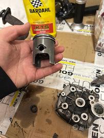 Vendo Gruppo termico 50 originale Piaggio con pistone e fasce elastiche con neanche 50 km pistone e fascia nove il gruppo termico va benissimo e vendo a parte marmitta 50 originale Piaggio nel pistone c’è gabbia rulli nuova e spinotto mancano solo i seeger guarnizioni testa nuovi