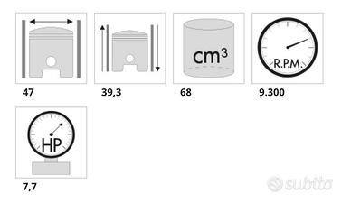 Cilindrata 68 cc - diametro 47 mm - corsa standard 39,3 mm per motori piaggio 50cc AC raffreddati ad aria