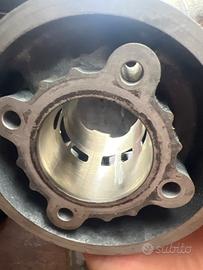 Vendo gruppo termico Simonini 70 minarelli orizzontale, è stato grippata ma da come si può vedere in foto oltre la lieve grippata il cilindro è ancora nuovo con le rigature di fabbrica