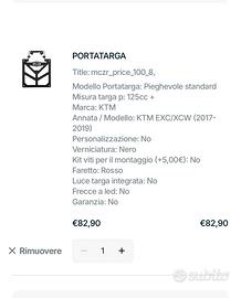 Vendo porta targa Gtlab specifico per ktm xc-w, completo di faro posteriore, come nuovo, solo provato ma poi rimosso! Il portatarga è reclinabile per poter istallare la targa nell’angolazione che si vuole. Pagato nuovo 82.00€ + spedizione. Adattabile anche a ktm sx o exc.