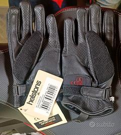 Guanti da moto estivi Helstons , modello Corporate Ete Cuir , colore nero in pelle morbida e stoffa con protezioni nocche , omologati , mai utilizzati con cartellini ancora attaccati
