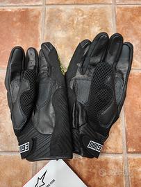 Vendo a metà del prezzo di listino, guanti moto in pelle Alpinestars SMX-1 Air Carbon V2mai usati, taglia L, neri con stella giallo fluo e tributo M. Marquez.