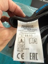 Guanti moto Bmw mai usati per misura errata misura 6/6,5 in pelle nera, azzurra e grigia vendo con etichetta.