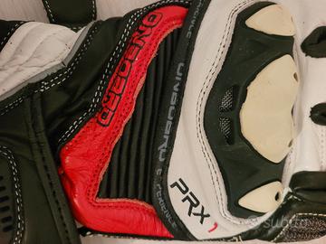 Il PRX-1 è realizzato in pelle di alta qualità con cuciture esterne per una migliore sensazione con i comandi. I guanti hanno anche superfici appositamente progettate per un miglior contatto con freno e frizione. La chiusura regolabile in velcro attorno al polso e all'avambraccio assicura che i guanti restino saldamente fermi.