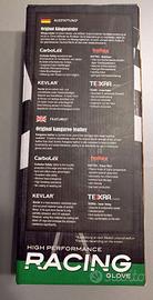 Pelle di canguro, kevlar e Coolmax- nei guanti sportivi IMPACT; Solo i migliori materiali sono stati utilizzati per soddisfare gli elevati standard degli utenti. La pelle bovina Technalin Gold sul dorso della mano è molto comoda da indossare e resistente allo sporco. Una maggiore protezione è fornita dalle protezioni Carbolex sulle nocche e sulla base del palmo, nonché dall'imbottitura SuperFabric sui figner e sui polsini. Oltre a questo, il kevlar è stato utilizzato su tutta la lunghezza del dorso della mano. La pelle di canguro altamente resistente all'abrasione e i pannelli elasticizzati sulle dita e sul dorso della mano offrono un'ottima presa e un'elevata libertà di movimento. La perforazione sulle forchette, il sistema di ventilazione integrato sulle protezioni e la fodera Coolmax sul dorso della mano mantengono la pelle fresca e asciutta.