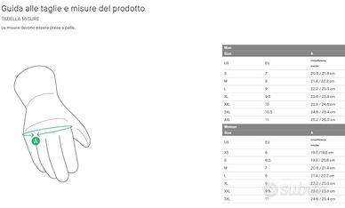 I guanti da moto SPIDI G-WARRIOR B94 sono perfetti tanto per i principianti quanto per i motociclisti più esperti. La loro struttura principale è realizzata in microfibra ad alta resistenza, apprezzata per la sua caratteristica di sopportare l'abrasione e l’eccellente sensibilità. Il palmo ed il dorso della mano sono imbottiti per offrire una maggiore protezione, con un ulteriore strato di microfibra sul lato esterno ed uno scudo rigido sulle nocche. G-Warrior sono compatibili con dispositivi touchscreen e sono presenti inserti con materiali elasticizzati su dorso e dita. Grazie alla estesa perforazione, questi guanti offrono infine un'eccellente ventilazione, mentre la chiusura sul polso è regolabile tramite velcro. SAFETY Imbottiture palmo, dorso e lato esterno PPE Guanto motociclistico protettivo certificato EN 13594:2015 con nocche certificate liv.1 KP CE: abbigliamento motociclistico protettivo sotto il Regolamento (UE)2016/425 Scudi Warrior nocche COMFORT Finitura grip&comfort su dita PERFORMANCE Aerazioni Linguetta che facilita la calzata del guanto Guanti compatibili con touchscreen ERGONOMY Compensatori di allungamento a canne MATERIALI Microfibra scamosciata ad alta resistenza Tessuto elasticizzato Tessuto in rete traforato Neoprene: materiale elastico confortevole e impermeabile Pelle di capra, spessore di 0.6/ 0.8 mm, alta vestibilità e sensibilità alla guida Disponibile taglia: M, L, XL, XXL Si effettua spedizione Corriere +€6,00 con pagamento: bonifico bancario, paypal Corriere +€15,00 contrassegno con pagamento alla consegna Possibile visionare i prodotti presso il nostro magazzino Freeontime indirizzo: Via Massimo D'Azeglio, 11 20831 Seregno (MB) Tel. 0362-241002 Tel: 3290077336 Apertura / Orari: LUN-VEN: 10-12,30 14-19,30 SABATO 10 Orario continuato 19,30 DOMENICA: 14,30-19,30