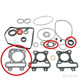 Codice ricambio: 21407 (R.21407) Vendo serie guarnizioni motore nuova e incompleta i pezzi cerchiati in rosso nella seconda foto sono quelli mancanti , per scooter 50 a quattro tempi tipo Piaggio Liberty 50 cc - Zip 50 cc - Fly 50 cc - Vespa Sprint 50 cc - Primavera 50 cc - ET4 50 cc con codice Piaggio497037 , per applicazioni e spaccato vedere foto